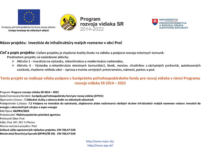 Investície do infraštruktúry malých rozmerov v obci Proč