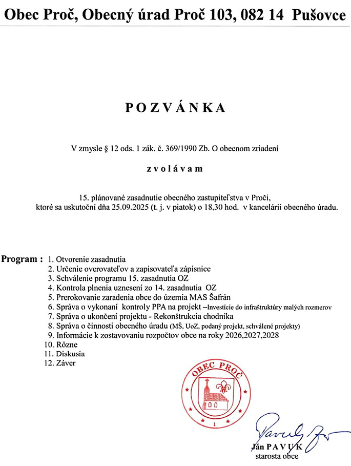 PROGRAM HOSPODÁRSKEHO ROZVOJA A SOCIÁLNEHO ROZVOJA obce Proč 2024 - 2030
